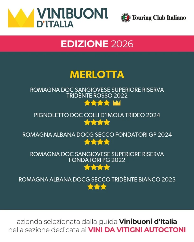 Una menzione particolare al nostro Tridènte Sangiovese Superiore di Romagna DOC 2022 che ha ricevuto la corona d’oro, simbolo che conferma la qualità e l’impegno che mettiamo ogni giorno per raccontare le potenzialità del nostro territorio e le sue eccellenze 🔱